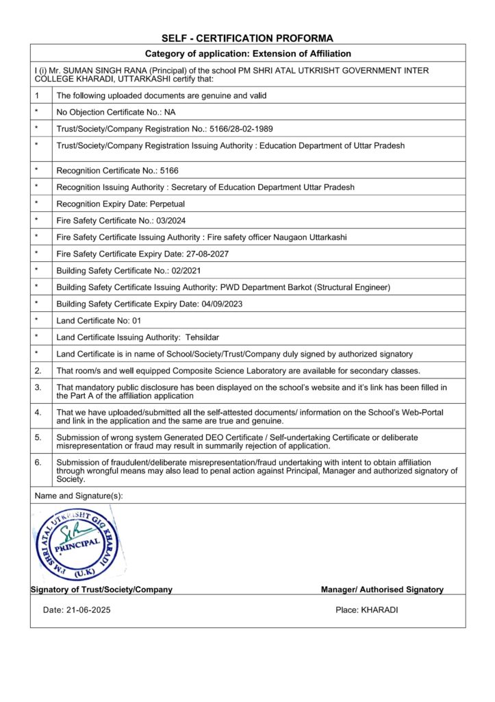SELF CERTIFICATE